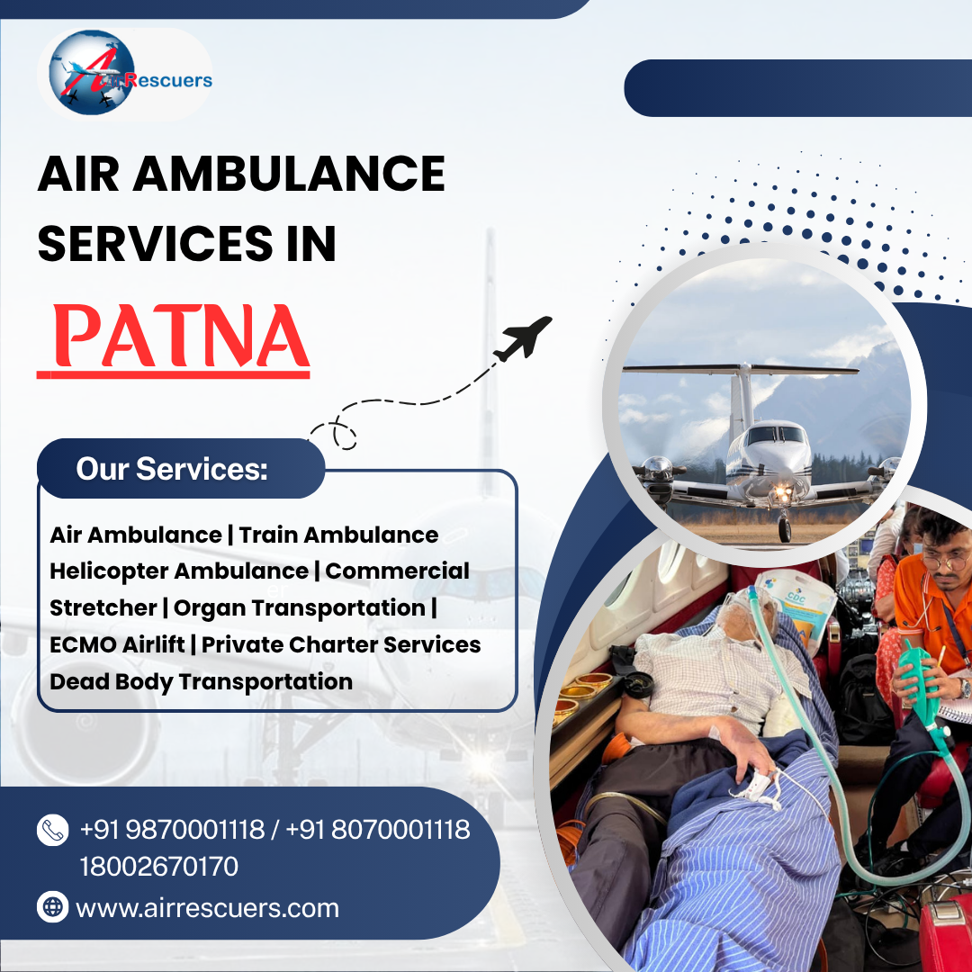 Looking for quick and reliable air ambulance services in Patna? We provide safe, affordable, and 24/7 emergency patient transfer with advanced medical support and experienced doctors. Book now for hassle-free air ambulance service across India and abroad. Call us today for immediate assistance.